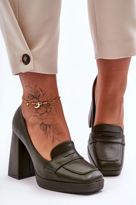 Modne Lakierowane Czółenka Na Masywnej Platformie Zielone Margott