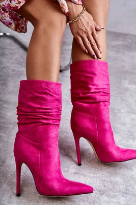 Damskie Marszczone Botki Kozaki Różowe Laguna