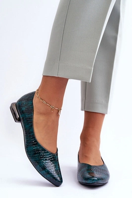 Damskie Skórzane Baleriny W Szpic Z Ozdobą Zielone Carlos