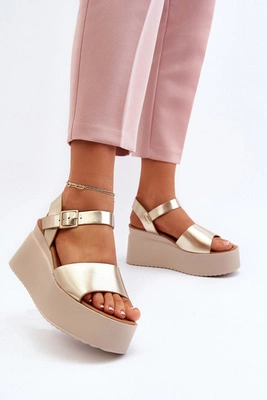 +4Damskie Sandały Na Koturnie Złote Geferia