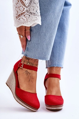 Damskie Klasyczne Sandały Na Koturnie Czerwone Malani