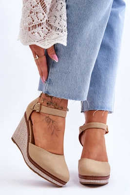 Sandały Damskie Na Koturnie Beżowe Daphne
