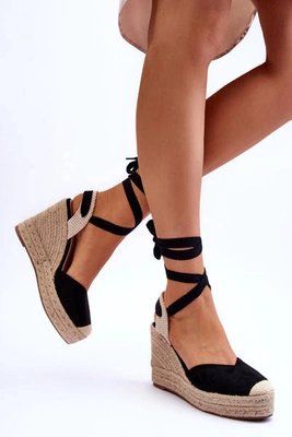 Modne Wiązane Sandały Na Koturnie Czarne Recife