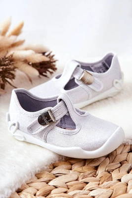 Trampki Dziecięce na Rzepy Chrzest Srebrne Bellawa