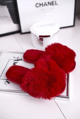 Dziecięce Papcie Klapki z Futerkiem Czerwone Snow Ball