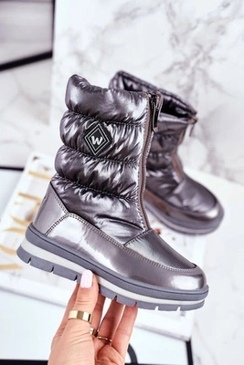 Dziecięce Botki Młodzieżowe Ocieplane Ciemnoszare Śniegowce Roofy