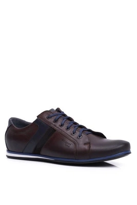 Półbuty Męskie Bednarek Skórzane Sportowe Płaska Podeszwa Brązowe Geos