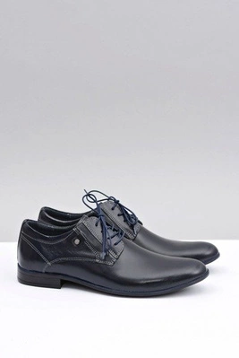 +2Granatowe Skórzane Eleganckie Półbuty Massimiliano