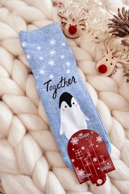 +3Damskie Skarpetki W Świąteczne Wzory Z Pingwinem Niebieskie