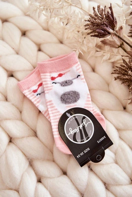 Dziecięce Skarpety W Paski Z Misiem Różowe