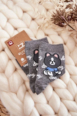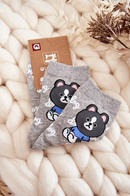 Damskie Bawełniane Skarpetki Piesek Jasnoszare