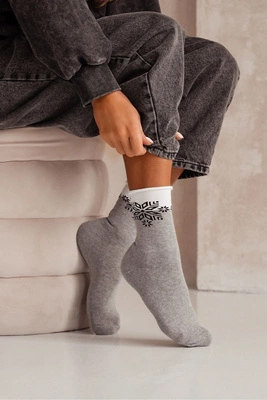 Damskie Skarpetki Świąteczne Miś W Czapce Mikołaja Szare