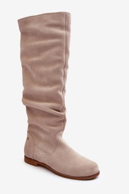 Damskie Zamszowe Kozaki Do Kolan Maciejka 05790-22 Jasnobeżowe