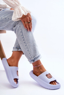 +8Lekkie Damskie Piankowe Klapki Z Misiem Niebieskie Lia