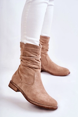 Damskie Marszczone Zamszowe Botki Beżowe Joanne