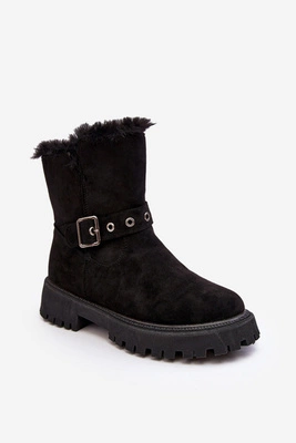 Botki Zamszowe Damskie Z Futerkiem Czarne Hasiva