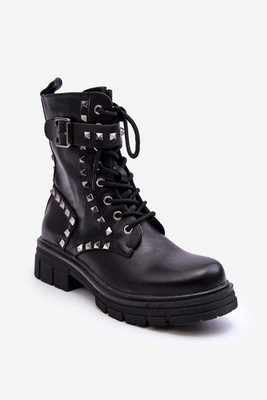 Damskie Masywne Botki Workery z Dżetami Czarne Tyralis