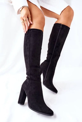 Zamszowe Kozaki Czarne Nicole 2582