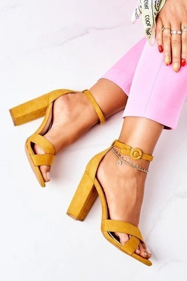 Zamszowe Sandały Na Słupku Żółte Destino