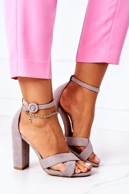 Zamszowe Sandały Na Słupku Szare Destino