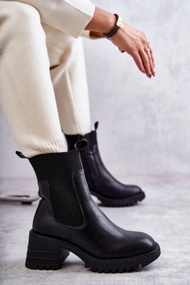 Damskie Botki Skarpetkowe Na Suwak Czarne Shelter