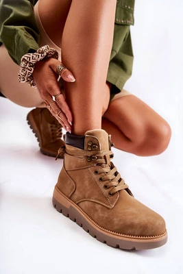 Zamszowe Damskie Ażurowe Botki Camel Lemar