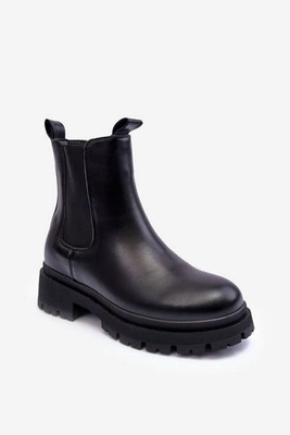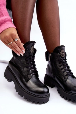 Skórzane Workery Botki Damskie Czarne Lemar Anceria