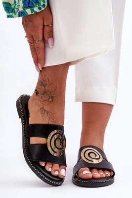 Skórzane Damskie Klapki Nicole 2735 Czarne