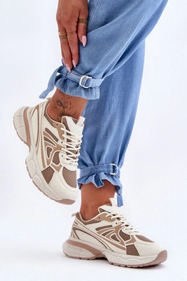 Damskie Buty Sportowe Sznurowane Beżowe Emare