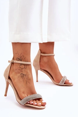 Zamszowe Sandały Na Szpilce Z Dżetami Beżowe Moments