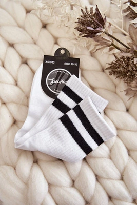 +4Damskie Sportowe Skarpety Pionowy Napis Just Play Białe