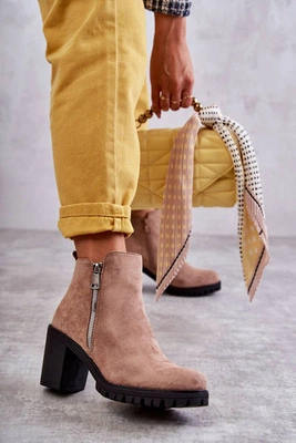 Zamszowe Botki Na Obcasie Z Suwakiem Beżowe Sevione