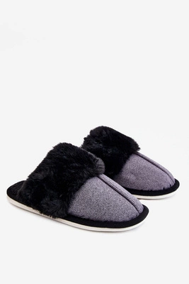 Męskie Ocieplane Papcie Z Futerkiem Szare Aron