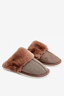 Męskie Ocieplane Papcie Z Futerkiem Brązowe Aron