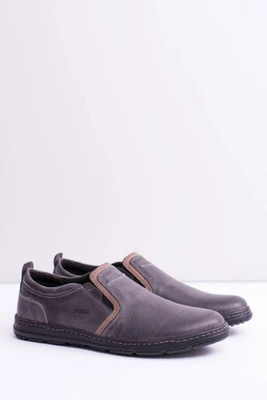 Wsuwane Skórzane Męskie Półbuty Leonidas Szare
