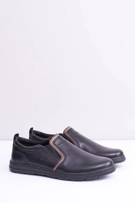 Męskie Czarne Skórzane Półbuty Nikopol Casual Polver