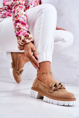 Zamszowe Półbuty Loafery Z Ozdobą Ciemnobeżowe Talisa