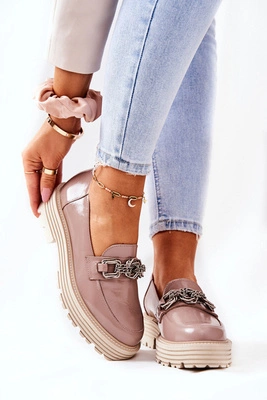 Damskie Półbuty Maciejka Lakierowane Loafery Beżowe 4099B-04