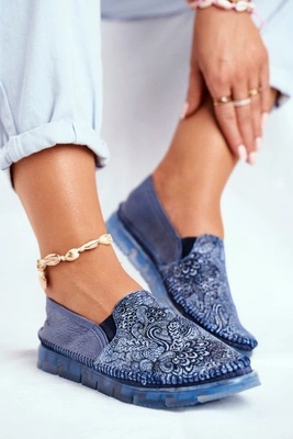 Damskie Granatowe Skórzane Tenisówki Bellara