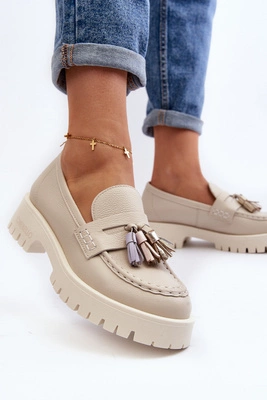 Damskie Skórzane Mokasyny Z Frędzlami CheBello 3096 Beżowe