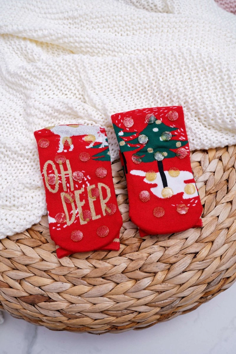 Damskie Skarpetki Świąteczne Antypoślizgowe Czerwone OH DEER
