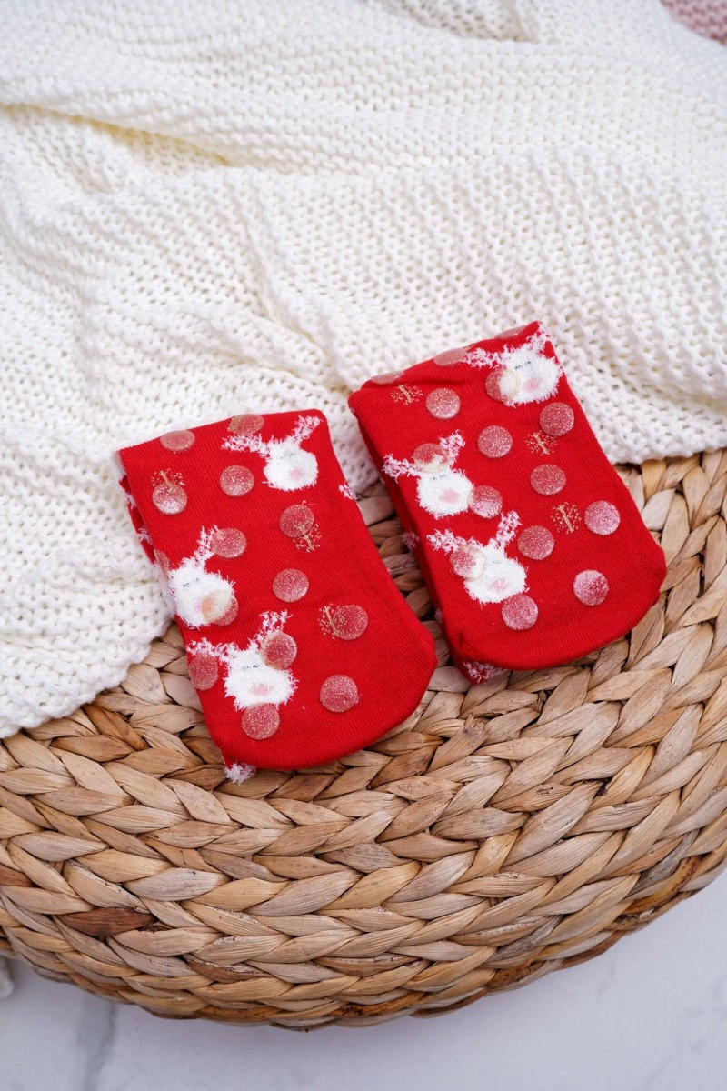 Damskie Skarpetki Świąteczne Antypoślizgowe Ciepłe Czerwone Z Reniferem
