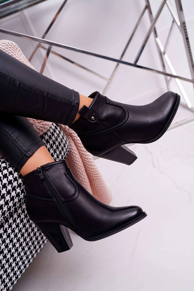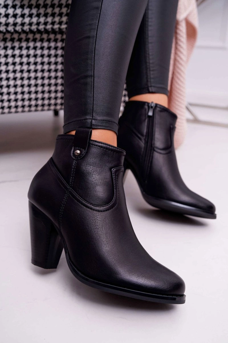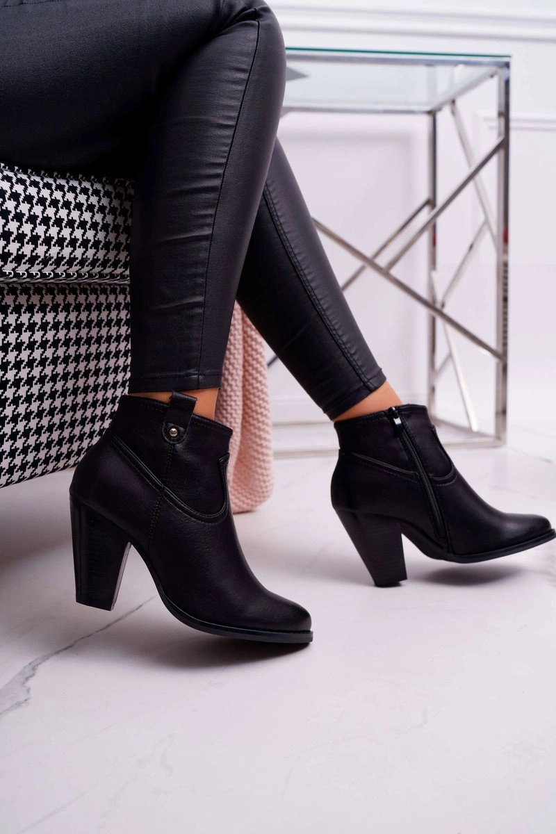 Damskie Botki Na Słupku Czarne Memfis
