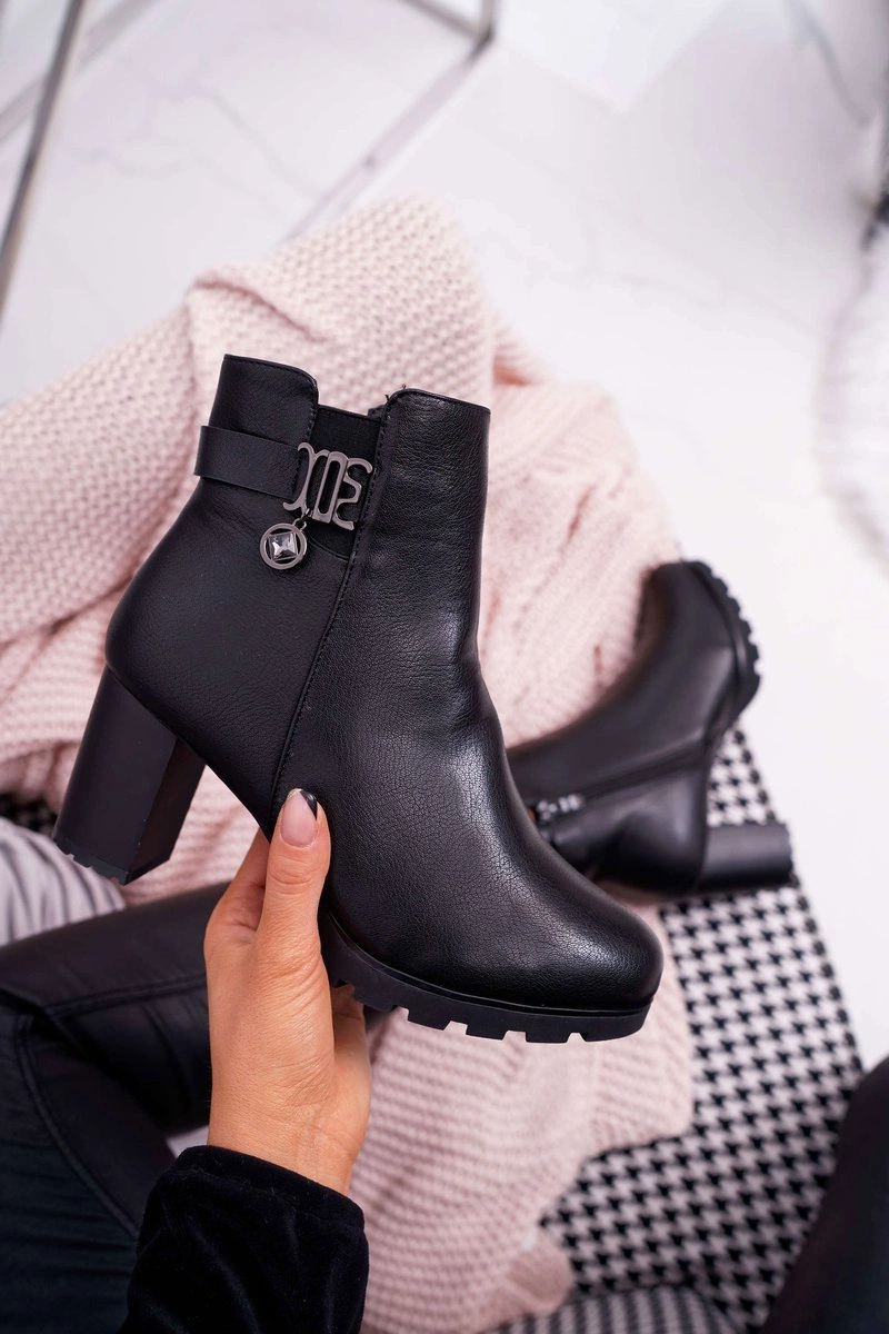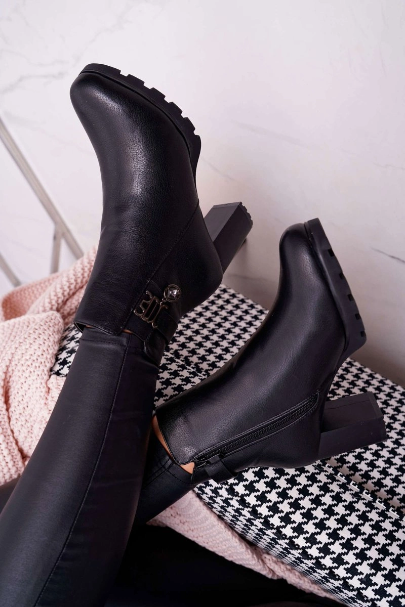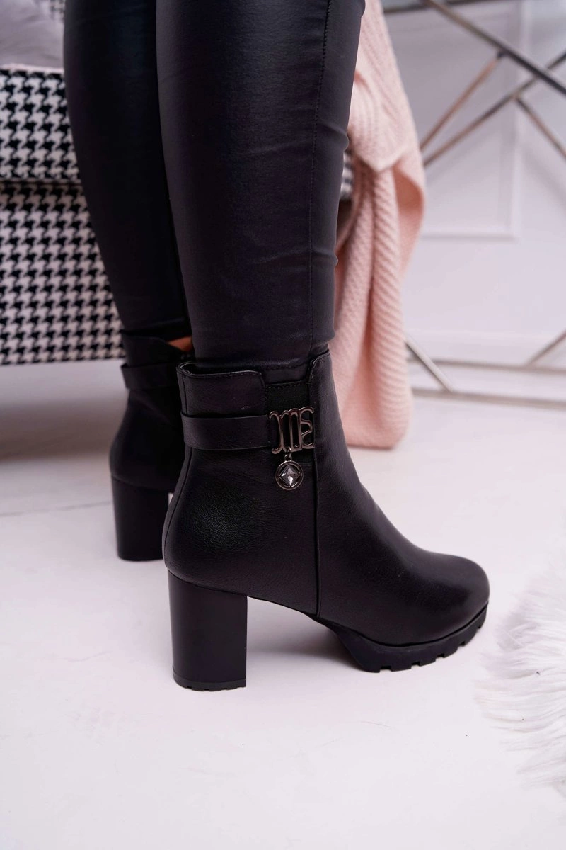 Damskie Botki Na Słupku Ocieplane Czarne Teleni