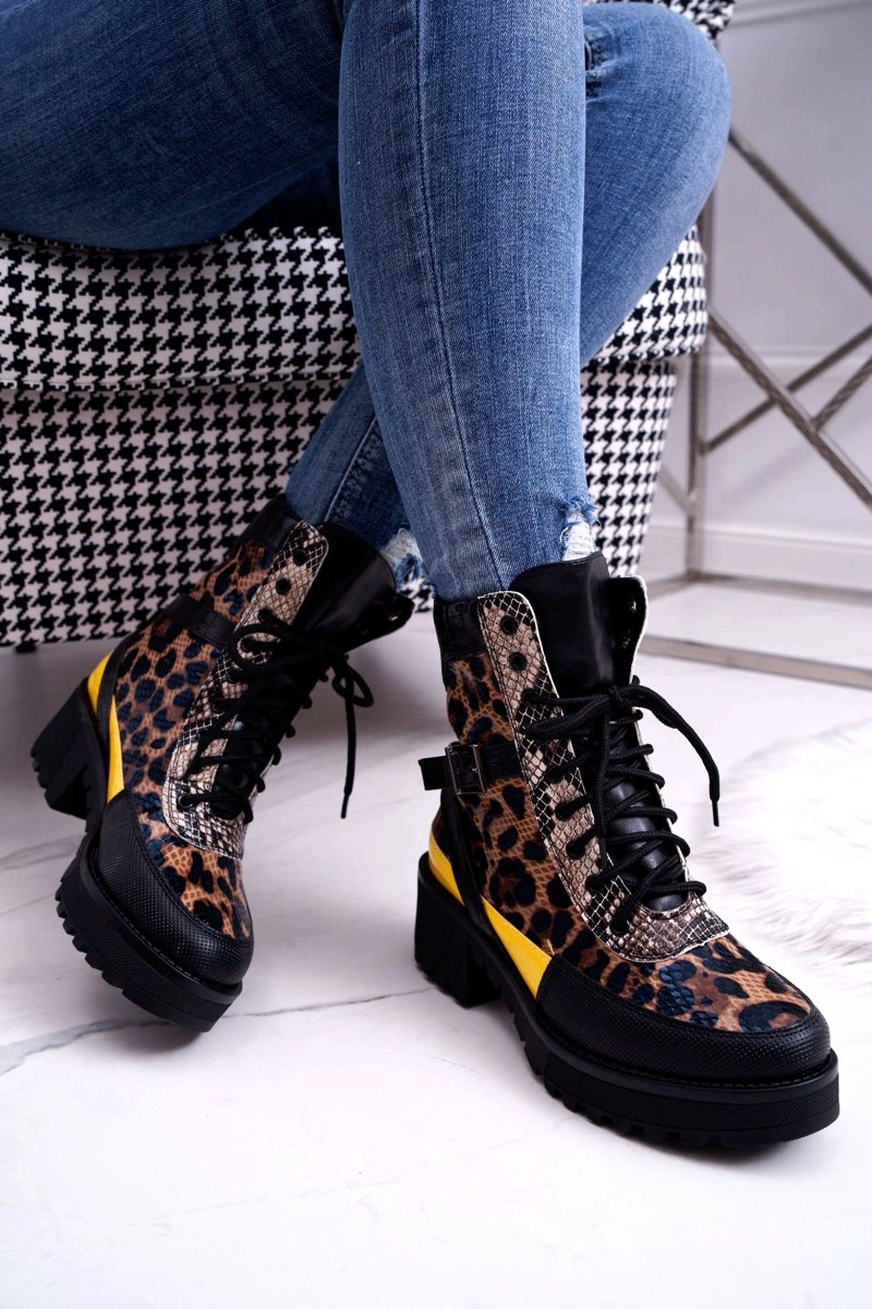 Damskie Botki Wysokie Trapery Leopard Femida