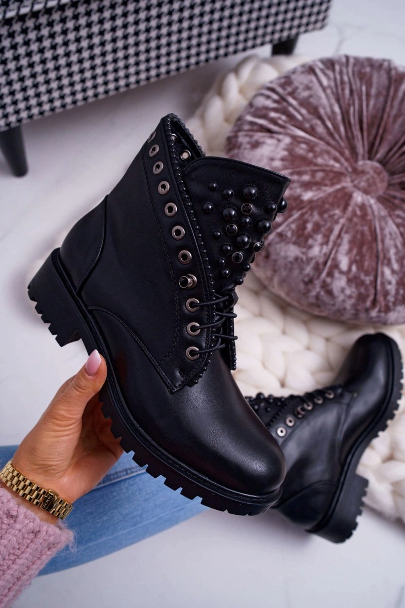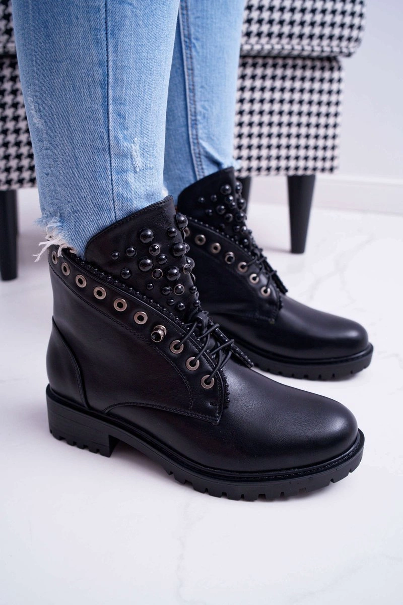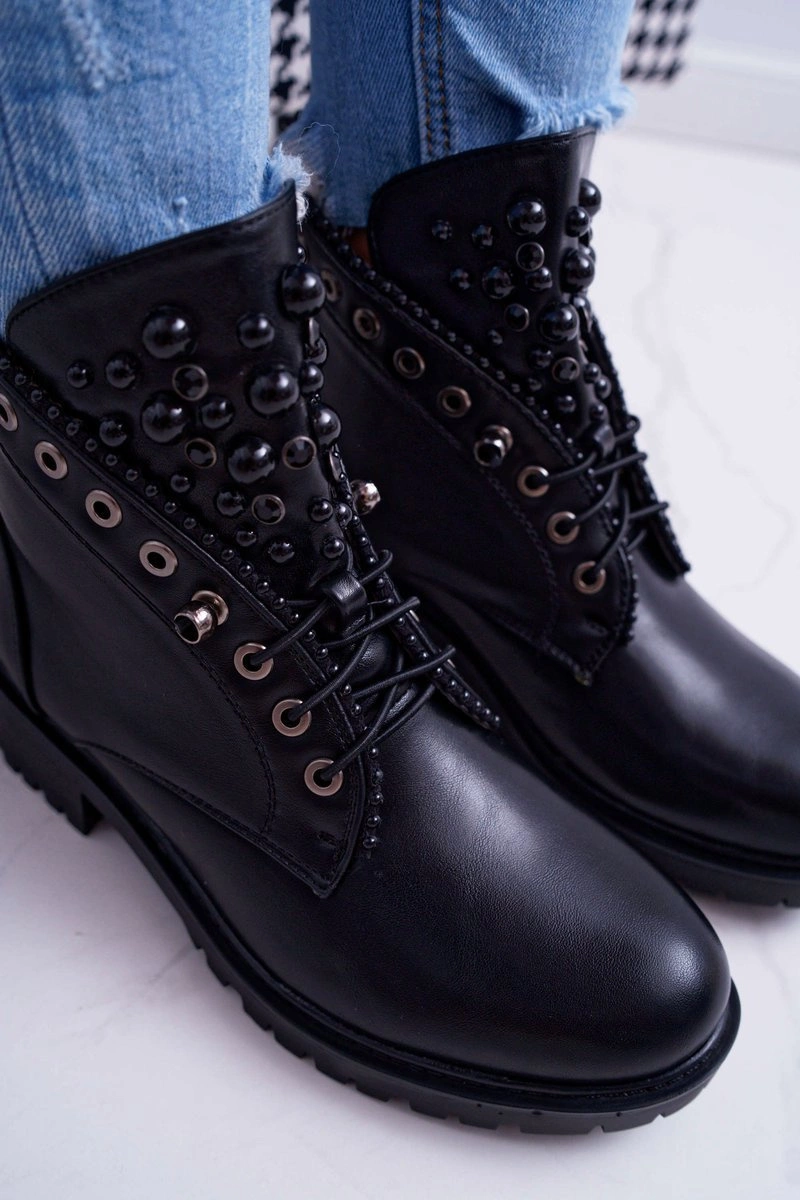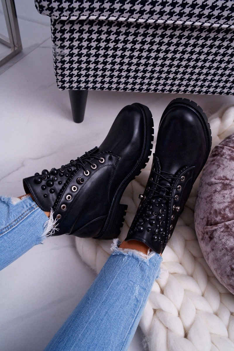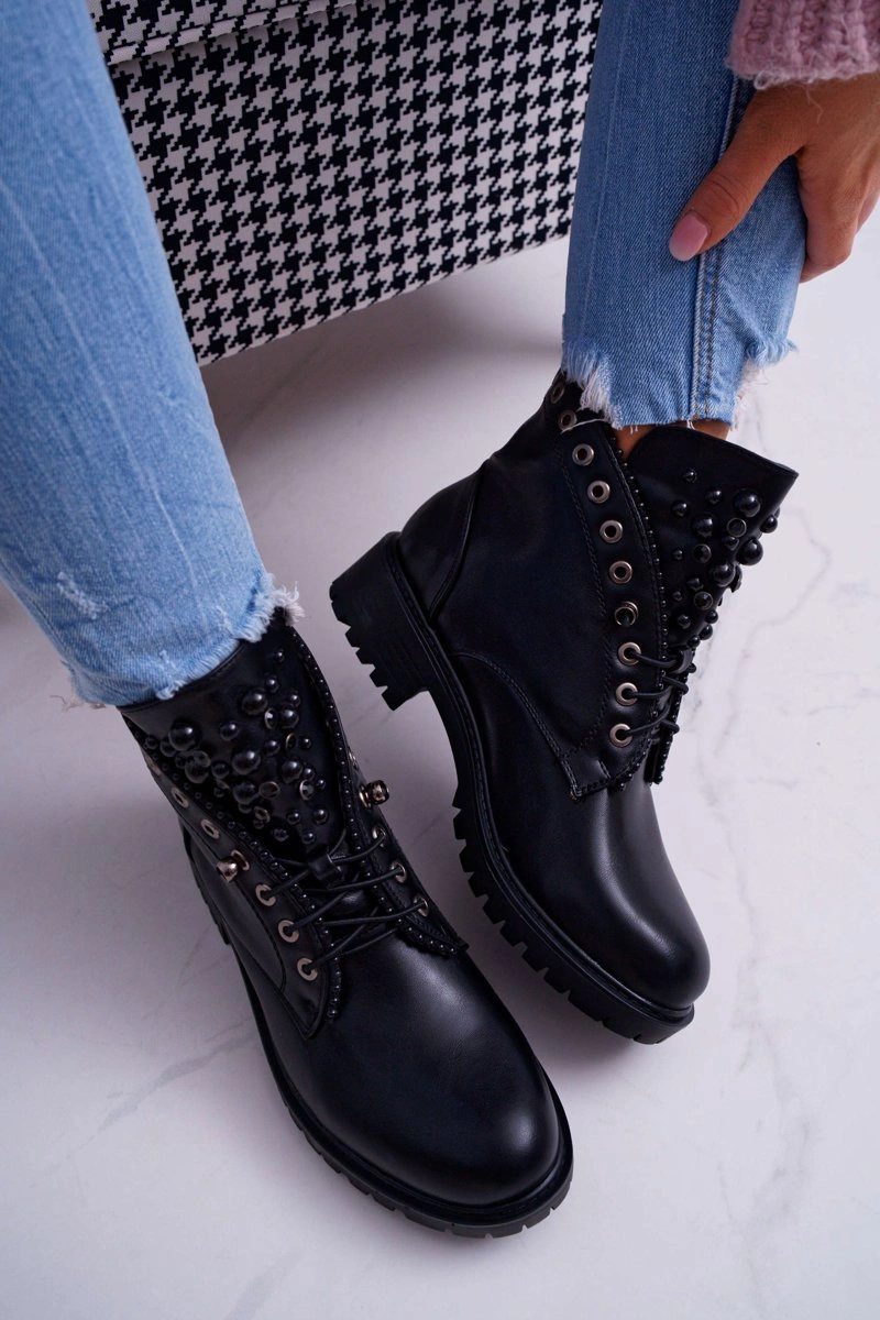 Damskie Botki Z Perełkami Ciepłe Czarne Memer
