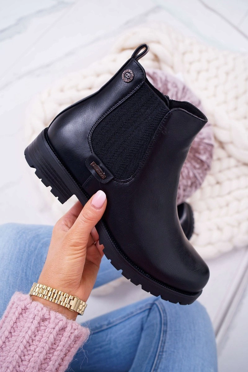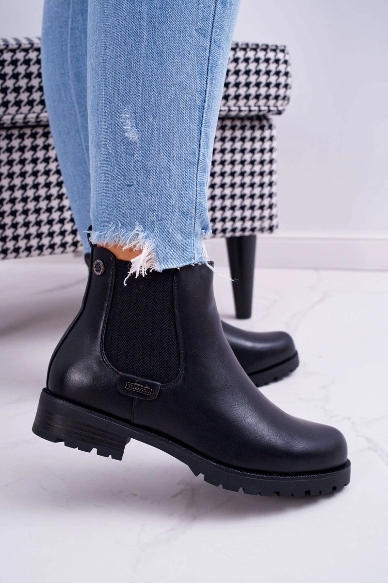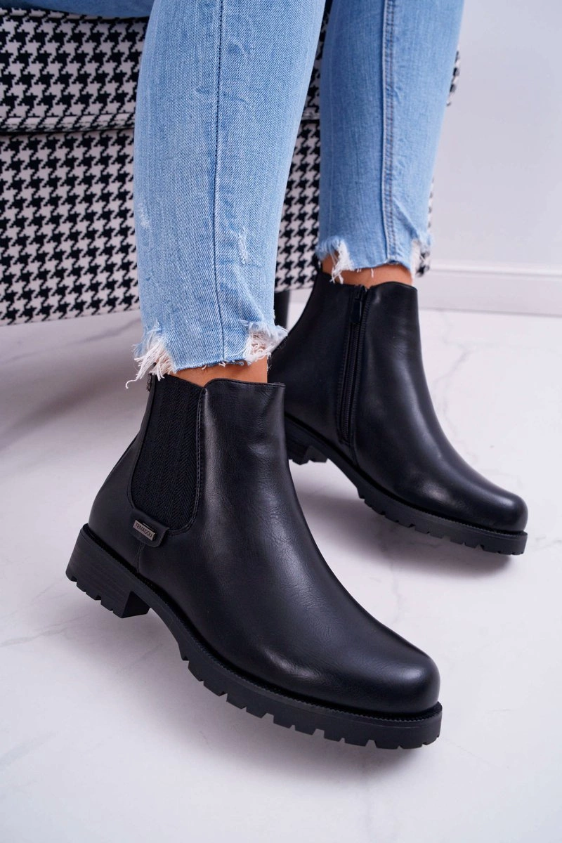 Damskie Botki Płaski Obcas Ocieplane Futerkiem Czarne Hertz