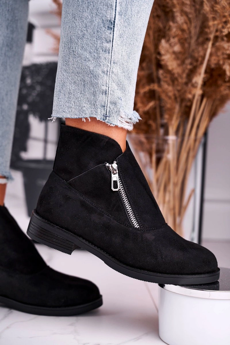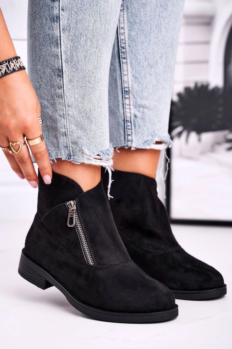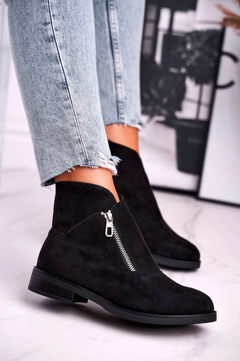 Damskie Botki Z Zamkiem Zamszowe Czarne Juno