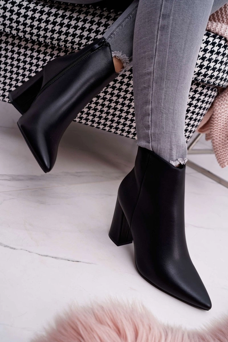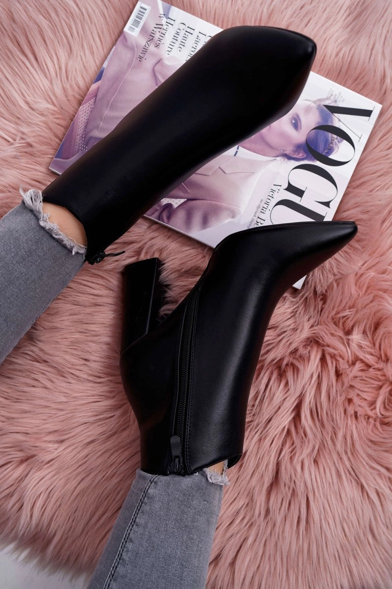 Damskie Botki Na Słupku W Szpic Czarne Felino