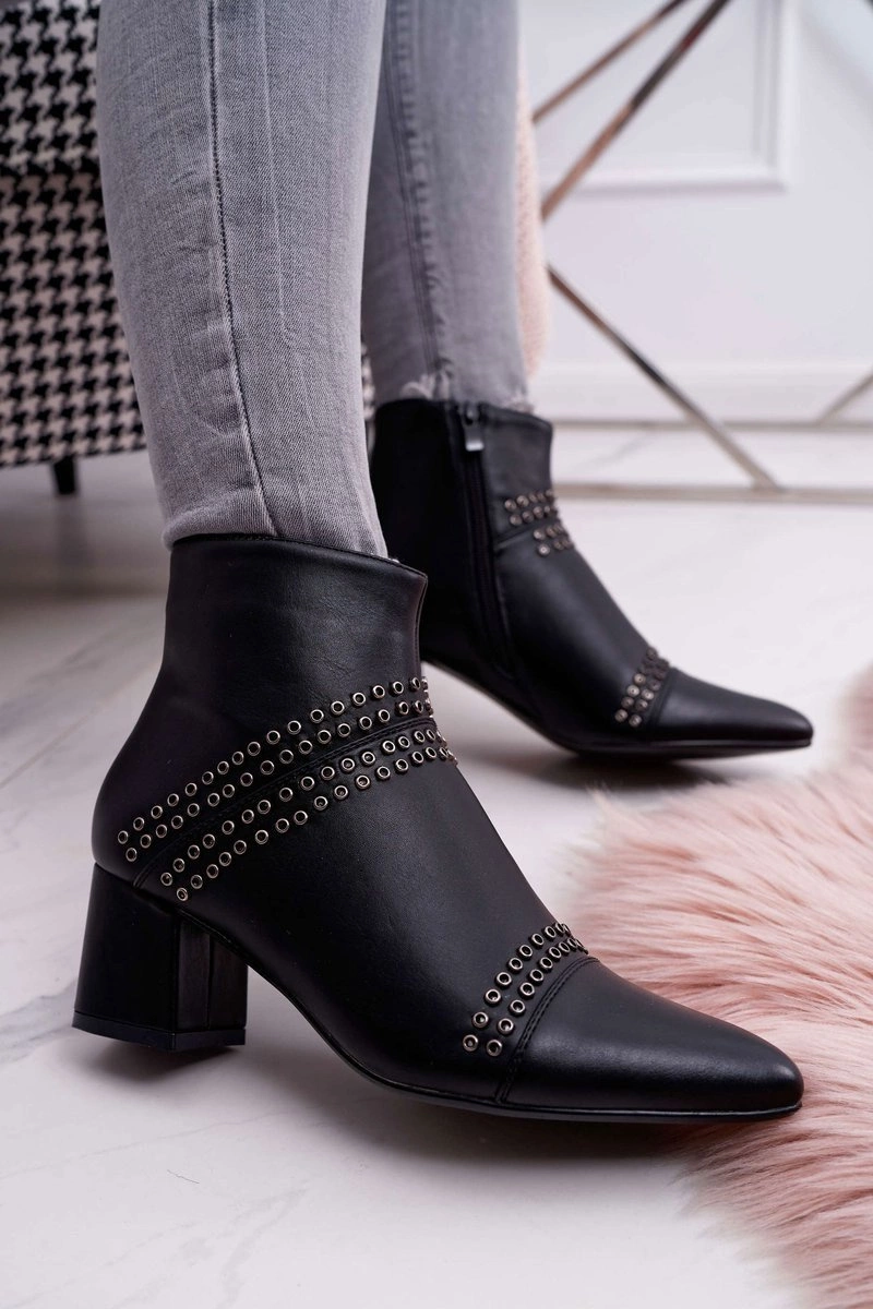 Damskie Botki Na Słupku W Szpic Z Nitami Czarne Primma
